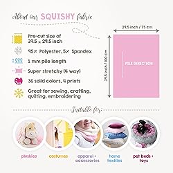 SAVINGS BUNDLE: 3 ultra cuddly pre-cut pieces of high-quality, 4 way stretch mochi minky fabric in BLACK, WHITE & SILVER GREY, 39.5x29.5" each (100x75 cm), packed in a lovingly designed box SUPER SOFT & DURABLE: Ultra cuddly, stretchy minky plush fabric, maintains its incomparable cuddliness even after many washes and is also tested for harmful substances VERSATILE USE: Perfect for sewing squishy stuffed animals, baby blankets, comforter, costumes, inner lining for jackets, home textiles such as pillows, chair & sofa covers as well as cat tree covers and cat & dog beds MATERIAL INFO: SQUISHY is a single-sided, knitted microfiber plush fabric with a pile length just over 1/32" (1 mm) and a weight of 280 gsm, made of 95% polyester and 5% ultra soft spandex which makes it super stretchy EUROPEAN QUALITY: All our fabrics are produced according to the European Safety Toy Standard and REACH directives (harmful substances).