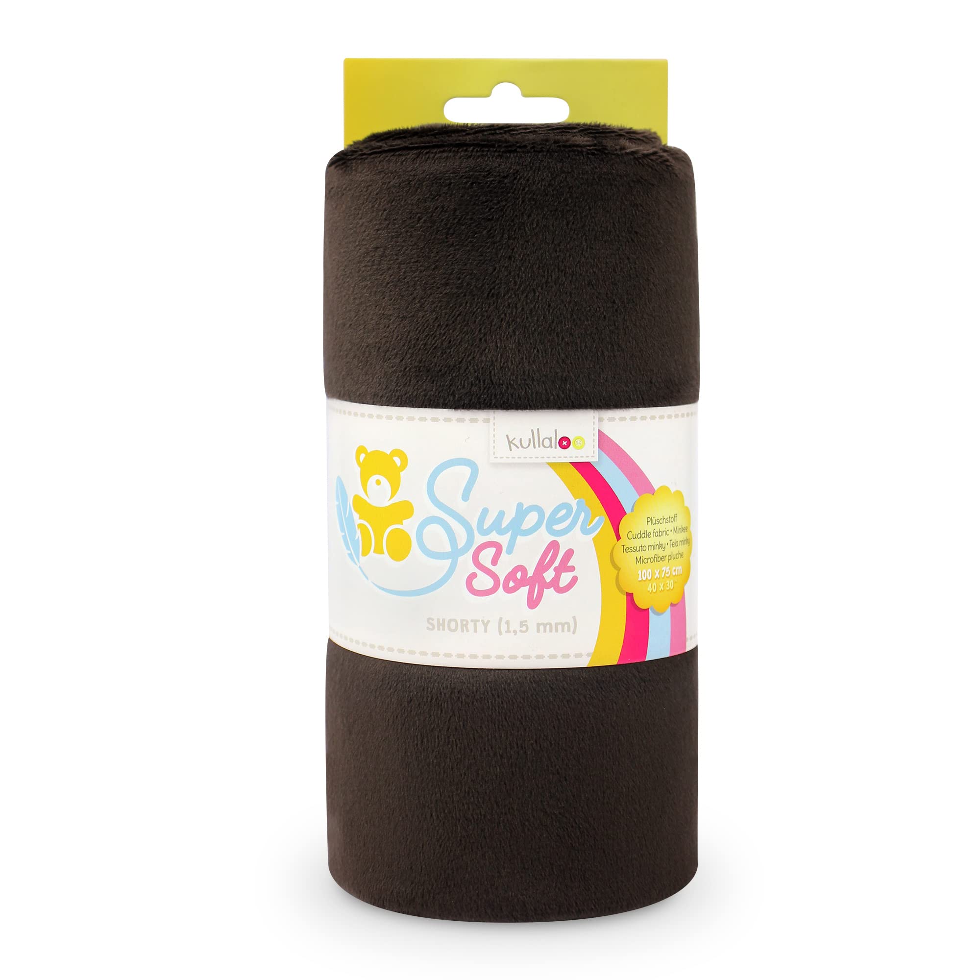 - SuperSoft SQUISHY is the name of our very own kullaloo mochi minky, the super soft and squishy fabric you might know from the Squishmallow soft toys. This bundle of three contains mochi minky fabric black, grey and silver, with a pre-cut size of 39.5×29.5“ (100×75 cm) each. The fabric pieces are made with 5% spandex, which makes them super stretchy compared to classic minky fabric. You can sew super squishy plushies with it, but also wonderful baby blankets, costumes or accessories. The mochi fabric is perfect to sew for babies and children because it is easy to clean (machine washable in warm water, suitable for dryers) and also tested for harmful substances. Compared for example to a sherpa plush made out of cotton, the plush is much softer and does not lose its incomparable cuddliness after many washes. It is also sturdy and very durable, so it can withstand years of cuddling and snuggling. That, along with all of the love and time you invest, gives a good chance that your handmade plushie or blanket becomes a lifelong companion! About the kullaloo "SuperSoft SQUISHY" mochi minky fabric SQUISHY is a single-sided, 4 way stretch mochi minky fabric with 1 mm pile length. It stretches both horizontally and vertically, with the horizontal extension being significantly larger. Due to this extreme stretchability, your handmade plush toy will be amazingly soft and squishy, especially when combined with a non-clumping fiber filling. As our mochi minky is made from two strong and durable materials – 95% polyester fiber and 5% ultra-soft spandex – it prevents the stuffed toy from breaking and shrinking. Another big advantage is that it does not shed as much as plush fabrics with a pile length of 3 mm or 5 mm. SQUISHY is produced in accordance with international quality standards and tested for harmful substances.