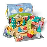 Melissa & Doug Blockables are connectable, stackable, and playable solid wood building blocks, perfect for little hands and big imaginations; special connectors let kids 2 and older easily snap together smooth, colorful blocks to create a fun neighborhood playground and vehicle to play with, or combine to build their own silly and cool creations Town Play Set includes 30 wooden blocks, 4 play figures, 32 connectors, 2 felt trees and a felt swing/slide/strap with built-in connectors, 4 wheels, and an illustrated play guide for putting together a swing, rocker, carousel, vehicle, pets, and more Build a collection - compatible with all other Blockables play sets; packaging folds out to double as a play space and pieces store in the sturdy box with handle for easy cleanup and portability; patent pending Like all Melissa & Doug toys, Blockables are designed to promote and support important developmental benefits for kids: They encourage fine motor, problem-solving, and matching skills, introduce storytelling, and help build self-esteem as kids build and create their own toys again and again Makes a great gift for preschool and older girls and boys, ages 2 to 7, for hands-on, screen-free play; This product is certified by the Forest Stewardship Council. Please note that FSC certification applies to new inventory only (FSC C156584)
