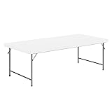 Let the kids have fun at this child sized activity table that is ready to use for snacks, crafts, learning and games. The white folding table is portable with the leg locking mechanism. Seats up to 6 children, legs lock underneath top for storage 1.5" thick plastic top is waterproof and stain resistant Perfectly sized for toddlers PRODUCT MEASUREMENTS: Overall Size: 29"W x 59.25"D x 19"H; No Assembly Required