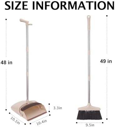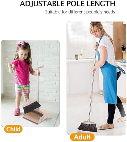 - Long Handle & Adjustable Height: Our 49 inches Long Handle Broom and Dustpan Set,made of high-quality stainless steel poles with excellent performance in rust resistant, solid and light weight, which is easy to clean. Different people’s cleaning needs will be satisfied with the extension 3 poles which can be installed in different length. or example the children, adult and old man, especially for backache people, help you finish the sweeping jobs without bending.