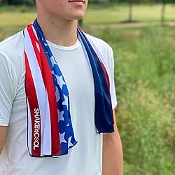SHAKEitCOOL Extended Size Cooling Towel – Be Cool in Style - Heat Relief, Soft, Lightweight, Sun Protection, Easy Clean - Perfect for Biking, Hiking, Running, Yoga, Golf, Gardening - Wavy Flag M
