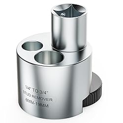TOOL SPECIFICATIONS: 1/2-inch stud extractors, breaker bolt extractors, and studs removers for 1/4-inch to 3/4-inch (6 mm to 19 mm) studs UNIQUE DESIGN: The design allows the tool to be flush with the mounting surface of the stud, so it can grab broken studs very close to the mounting surface THE MOST EFFICIENT HELPER: Helps to easily remove the bolt extractor and secure the stud quickly and efficiently SAFE AND EASY TO USE:For safely removing broken or seized bolts and studs, the 2 1/2“ (14 mm) and 3/4” (19 mm) holes provide an optimal fit and minimize thread damage WARM GUIDELINES: Using a 1/2-inch ratchet or a flexible handle, turn the extractor to engage the stud to tighten, then turn until the stud pulls out