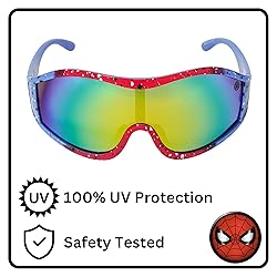 SPORTS WRAP FOR KIDS: One size of these large lens Spider-Man sunglasses fit most kids comfortably all day SUPERHERO DURABILITY: Lightweight and tough Spider-Man sunglasses. These impact resistant sunglasses will stand up to any heroic adventures 100% UV PROTECTION: Protect the eyes from the sun’s rays with these Marvel Official UV 400 lenses while fueling imaginative play anywhere, at the park, beach, or in the backyard EXCELLENT GIFT OR PARTY FAVOR: As seen on the popular show, Shark Tank. Arkaid by Sun-Staches shades bring the fun to the party and make great gifts too! OFFICIALLY LICENSED: Marvel fans will love wearing these red and blue splatter sports wrap shades