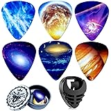 Miwayer Guitar Picks-Medium, 6 Pack Art Cool Guitar Pick In Metal Box W/Black Pick Holder, Unique Gift For Bass, Electric & Acoustic Guitars Lovers (Starry Sky)