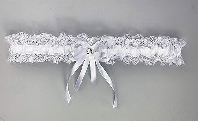 • Beutiful modern lace garter made from white lace and white bow, finished with a crystal rhinestone in the center. SIZE: Adjustable elastic rubber band to fit most - Fits thigh circumference of approx 14.9 - 25.2 inches (38 cm - 64 cm). The base is rubber band so the garter does not slip on the leg. Package Includes - 1 Pcs White Garter MATERIAL: Made from white lace and delicate white satin bow GREAT GIFT for bride! This garter would be beautiful with a every wedding dress!