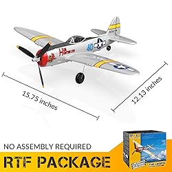 - FLIGHT STABILITY AND EASY TO FIY: The P-47 remote-controlled aircraft is made of lightweight elastomer foam and can fly in outdoors. Enough light and high flexibility material make the RC plane easy to fly. 3 MODES THAT EASY TO CONTROL: Beginner, Intermediate and Experienced 3 Modes which makes you easy to learn to fly the plane at your own pace. Amazing Gift item for adults. NEW TECHNOLOGY TO PROTECT AIRPLANE FROM DAMAGE: New Propeller Saver Technology which is used to save the RC plane from damage. And its easy to install the propeller back to the plane. PRODUCT INFORMATIONS:This P47 RC Plane Glider Has A Fuselage Length of 14 Inches, Wingspan: 15 Inches, And 2.4Ghz Radio Control distance of within 656 feet. 8mm Coreless Motor, Flying time of up to 12 min on a single charge. XPILOT STABILIZATION SYSTEM EASY TO FLY: The Xpilot gyro stabilizer provides ultra-stable self-stabilization for easy flying. The powerful over-grade motor system enables easy control for aerobatic maneuvers.