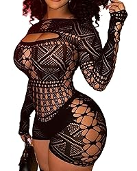 This fishnet romper is made of soft fabric which is breathable, skin-friendly, comfortable to wear, flowy, soft, lightweight, easier to put on and take off closure; Long Sleeve and shorts Jumpsuit fits most US size XS- XL,height 4'2'' to 6'1'',weight 70-165 lbs,especially if you are curvy and busty,hugs your shape; Woman long sleeve casual bodysuit, slim fit, shorts, hallow out, sexy one piece bodystockings,it can be paired with jackets, coats, cardigans, sneakers, high heels, sandals etc; You can wear it for different occasions, wearing on beaches, swimming pools, bikini cover up, carnival, honeymoon, cosplay, club, lingerie party, vacation, dailywear,Halloween cosutme,Christmas gifts, Valentine's gifts; Package contains: 1 X Bodysuit. This fishnet bodysuit is very lightweight, gentle hand washed is recommend,machine wash may damage it.