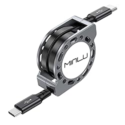 MINLU Retractable USB Type C Cable 240W, USBC Data Sync Retractable Charger Cable, PD Fast Charging iPhone Charging Cord for iPhone 15/Pro/Plus/Pro Max, MacBook, iPad Pro Air 2024 (Black-1, 240W)