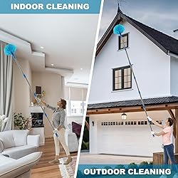 Multi-purpose Cleaning Kit: Our comprehensive cleaning kit includes two distinct duster heads attached to detachable poles, making any corner or high ceiling within easy reach. Offering a versatile solution to all your cleaning needs. Ultra Fine Fiber Duster Head: Made of thousands of ultra-fine fibers that attract dust like a magnet, this duster head can bend flexibly for easy cleaning of hard-to-reach areas. Say goodbye to dust on fans, chandeliers, sofas, tables, and shelves, ensuring a sparkling clean environment. Professional Cobweb Duster Head: Tackle pesky spider webs with our duster head specifically designed for high corners and narrow spaces. The unique 360° cleaning design and sturdy bristles ensure thorough cleaning without damaging surfaces. Perfect for high ceilings, walls, shelves, and window screens. Comfortable to Grip: Ergonomic design, plastic material at the end of the handle, non-slip, more comfortable to grip with suspensible design 10 Detachable Poles Included: Based on market research, most ultra long dusters with extendable poles are either too heavy or inconvenient to store. Our detachable poles allow customers to choose connections based on the height, reducing unnecessary weight.With poles ranging from 3 feet to 13 feet, we have all your cleaning needs covered. Our duster head can be washable and reusable,economical and practical