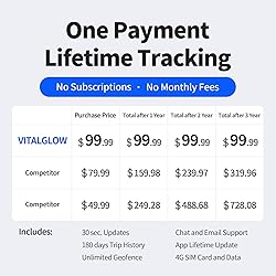 - VITALGLOW GPS Tracker for Vehicles No Monthly Fee, No Subscription, Long Battery Life, 4G SIM Card and Data Included, Trip History, GeoFence, Driving Alerts
