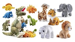 - PREXTEX 15" T-rex Dinosaur Stuffed Animal Set w/ 4 Plush Dinosaur Toys Inside and Safari Friends Stuffed Animal Gift Set - 5 Small Plush Stuffed Animals