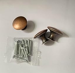 STURDY MATERIAL: The cupboard handles are made of zinc alloy and iron, rust-proof, scratch-resistant and sturdy. CLASSIC STYLE KNOBS: Round cabinet pulls are classic, simple and practical. Multiple color options to meet the needs of vintage, modern and other styles. WIDE APPLICATION: The metal knobs retro are suitable for furniture doors, cabinets, cupboards, drawers, wardrobes, shoe cabinets, chests, dressing tables, bookcase etc.. SIZE: Top diameter: 30 x 21mm / 1.18 x 0.83''. Screw length: 27mm / 1.06''. The knobs are suitable for drawers with a thickness of 5-20mm / 0.2-0.79''. PACKAGE CONTAINS: 12 copper round drawer knobs and 12 screws.