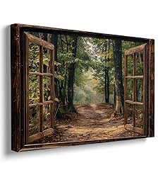 Generic Window view Forest tree wall Art walkway Forest Window wall Painting Forest landscape canvas printing retro oil painting Modern living room office home decoration 24x36 poster frame wall art