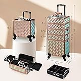 Stagiant Rolling Makeup Case Cosmetology Case on Wheels 4 in 1 Large Cosmetic Organizer Train Case Makeup Travel Case with Key Swivel Wheels Nail Artist Salon Storage Traveling Cart Trunk Rose Gold