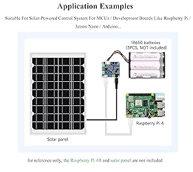 The Solar Power Management Module (D) is designed for 6V~24V solar panel. Supports solar panel / Type-C power adapter for batte-ry charging, and provides 5V/3A regulated output (supports multiple protocols such as PD/QC/FCP/PE/SFCP). The module features MPPT (Maximum Power Point Tracking) function and multi protection circuits, therefore, it is able to keep working with high-efficiency, stability, and safety. For 6V~24V solar panel, supports self-adaptive input voltage via DC-002 jack or screw terminal, with input anti-reverse protection. Multi LED indicators, for monitoring the status of solar panel and batter-ies. Multi protection circuits: over-charge / over-discharge / overheat / over-current, stable and safe to use. Application Examples---Suitable for Solar-Powered Control System For MCUs / Development Boards: Compatible with Raspberry Pi / Jetson Nano / Ardui, etc. It is suited for solar-powered, low-power IoT, Mini Solar Road Lamp, Intelligent Agriculture, and other environmental protection projects. Package Include: Solar Power Manager Module, Battery Holder ( Note: Batteries are not included) Comes with Online Usage Guide and Online Development Resource, Please check: n9.cl/ih8sb