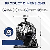 55 Gallon Large Trash Bags [39” X 56” – 20 Micron] 20 Black Contractor Garbage Bags | Heavy Duty Lawn Leaf Yard Waste Bags | 55-60 Gallon Extra Large Construction Industrial Plastic Trash Can Liners