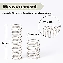 185 Pcs Assortment: A complete set with a wide range of springs for diverse applications. Stainless Steel Construction: High-quality material ensures long-lasting durability and resistance to rust and corrosion. 13 Different Sizes: Versatile selection to fit various repair needs, making it a must-have for any toolkit. Ideal for Shop and Home Repairs: Perfect for professionals and DIY enthusiasts alike, providing the reliability you need for every repair task. Enhance your repair capabilities with the Manderson Compression Springs Assortment Kit and experience the convenience and quality of having the right spring at your fingertips. Size: Wire Diamter x Outer Diameter x Free Length (inch) For other specific information such as total coils, please refer to the picture. A1 - 0.0177" x 0.197" x 0.394" A2 - 0.0177" x 0.197" x 0.787" A3 - 0.0197" x 0.236" x 0.394" A4 - 0.0197" x 0.236" x 0.787" A5 - 0.0197" x 0.236" x 1.181" A6 - 0.0236" x 0.276" x 0.394" A7 - 0.0236" x 0.276" x 0.787" A8 - 0.0276" x 0.276" x 0.394" A9 - 0.0276" x 0.276" x 0.787" A10 - 0.0276" x 0.276" x 1.181" A11 - 0.0315" x 0.591" x 0.787" A12 - 0.0315" x 0.472" x 1.575" A13 - 0.0315" x 0.394" x 2.362"