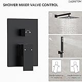 EVERSTEIN 10 Inch High Pressure Rainfall Shower System with Handheld Spray, Wall Mount Bathroom Shower Faucet Set with Valve (Matte Black)