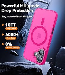 - CANSHN Magnetic Case for iPhone 16 Case [Compatible with MagSafe & MIL-Grade Drop Tested] Slim Translucent Matte Cover, Anti-Scratch Shockproof Phone Case for iPhone 16, Hot Pink