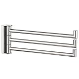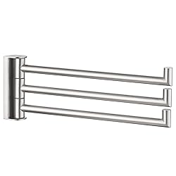 EFFICIENT & VERSATILE: 3 bars provide extra space for holding and displaying items such as hand towels, ties, scarves, create a unclutter environment 180 DEGREES ROTATION: the bars can be independently swung from side to side, you could adjust the hanging position to your liking, easy to hang or take towels FUNCTIONAL GASEKT: gasket between bars ensures silent and smooth operation, swivel bars help air circulation, quickly dry out damp towels and keep them clean & organized SOLID & SUPERIOR: high-grade 304 stainless steel with premium brushed nickel finish for dependability, resit rust and tarnish, no wobble if anchor and install properly SPACE SAVING SOLUTION: proper size won't take up much room with its folding feature, usable length of each bar is 8-7/16"(215mm) that helps spread hand towels