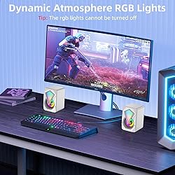 Enhanced Clear Stereo Sound: Equipped with advanced sound drive units, NJSJ desktop speakers deliver full-range 2.0 channel enhanced stereo sound, ensuring distortion-free and noiseless performance. Enjoy superior, clear, and rich audio. Dynamic RGB Lighting Effects: The laptops speakers feature automatic cycling RGB lighting effects that create a captivating atmosphere while listening to music or watching movies. (Note: Lighting effects cannot be controlled or turned off.) Mini Size & Portable: Weighing only 350g, these computer speakers are lightweight and easy to carry in your backpack along with your laptop. Perfect for business trips, meetings, or travel. Easy to Use: Simply plug into a USB port for power (from a laptop, PC host, or USB port audio adapter) and connect the 3.5mm jack for audio. The gaming speakers power on automatically with no need for drivers or software installation. Wide Compatibility: These USB pc speakers support most devices with a standard 3.5mm jack, making them compatible with PCs, computers, laptops, tablets, smartphones, iMacs, and MacBooks. (Note: USB power is required.) Package Contents: 2× Computer Speakers, 1× User Manual and we back our 24-month product after-sales support with friendly customer assistance.