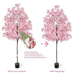 Home decor highlights: This realistic cherry blossom tree is the ideal decoration for any space and will add a spring atmosphere to your home. Pink cherry blossoms cluster on elegant brown tree trunks, lifelike, layered flowers bring visual pleasure. Interspersed with green leaves add to the soft atmosphere of nature. Up to 6 feet tall, it fits in tight corners and adds elegance and beauty to your home environment. Easy Care: No need to water, fertilize or clean soil every day, no need to prune or worry about leaf litter. Just a gentle wipe with a damp cloth once in a while can keep your flowers decorations fresh for a long time.This is perfect for those who don't have the time or gardening experience to have a natural atmosphere in their home at all times. Perfect Decoration: The 6 feet tall artificial tree comes with a black pot made of cement and filled with plastic to simulate black soil. It can be placed alone or placed in a flower pot to better decorate your home and office. Ideal for balconies, terraces, cafes etc Packaging: Artificial indoor plants may need to be reshaped when removed from the box to achieve its intended appearance. Insert the upper and lower parts of the trunk together as shown. The branches are very flexible and strong, making them easy to rearrange to your liking. (Our Cherry Blossom artificial tree only includes a black plastic pot, the decorative flower pot in the picture is not included, buyers need to purchase extra if needed) Applications: This Cherry Blossom artificial tree indoor is suitable for decoration in homes, gardens, offices and shops. Not restricted by seasons, it brings warmth and vitality to your environment and adds color to your life.This fake cherry blossom tree is made of high-quality materials and strives to restore the natural beauty. Due to the design characteristics of the simulated petals, slight drop is a normal phenomenon, and does not affect the overall beauty and use effect.