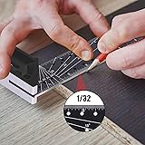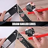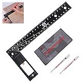 【Excellent Woodworking Tools】The base of the framing square is die-cast aluminum for strength and durability. The body of the ruler with the scale is cnc-machined aluminum alloy, which is 3/32" thick, and is more resistant to bending and less likely to deform compared to the thin steel body. Gives you a more perfect grip and feel of use. 【Innovative Retractable Support Tabs】Features retractable support tabs for stabilization on any surface, freeing up your hands for easier woodworking. It retracts into the base when you don't need it and doesn't interfere with your other uses. With its help, when you underline or mark, you can do it steadily and quickly! You'll love the design after one use! 【Positioning Marking Holes】 Angle Measurement and Marking: The woodworking try square ruler has marking holes for marking angles, which can quickly mark 10 common angles (10°, 15°, 20°, 30°, 45°, 50°, 60°, 70°, 80°, 90°). There are also positioning holes every 1/2 inch for you to draw the desired straight line. We have equipped with a scribe pin on the base of the ruler for quick and easy marking. 【Accurate and Esy to Read Scale】Silver-colored scales engraved on a black background make the scale easy to read. The laser-engraved scales do not need to worry about peeling off or wear and tear, and can adapt to harsh environments, greatly enhancing the tool's lifespan. 【Multifunctional Framing Tool】This Framing Square Carpentry Square has many functions such as measuring, marking, scribing, etc., which can be widely used in various occasions such as carpentry, construction, handmade DIY and so on. Your good partner at work!