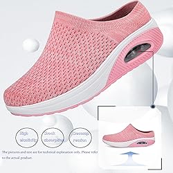 NELSBREX Orthopedic Mule Clogs for Women Stretch Knitted Platform Closed Round Toe Comfortable Breathable Air Cushion Walking Sliipers Open Back Wedge Heel Casual Mules Sneaker with Arch Support