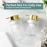 Glass Foaming Soap Dispenser - 2 Pack Foaming Hand Soap Dispenser for Bathroom & Kitchen,10 OZ Foam Hand Wash Dispenser, Refillable Dish Soap Dispenser Golden Pump