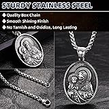 【St Joseph Medal Pendant】Saint Joseph tenderly holding the little jesus. Joseph is the patron saint of the dying because he died with Jesus and Mary close to him. He is also the patron saint of the Universal Church, families, fathers, expectant mothers, travelers, immigrants, house sellers and buyers, craftsmen, engineers, and working people in general. This St Joseph necklace is perfect for those who want strong faith and a happy life. 【Perfect for Any Occasion】Whether you're dressing up for a special occasion or keeping it casual, this stainless steel mens necklace is perfect for any gift giving occasion, great gift for First Communion, Confirmation, All Saints Day, All Souls' Day, Christmas, Father's Day, Adult Ceremony, Graduation, Birthday, Wedding, Anniversary, Thanksgiving Day, Back to School and casual days for men. 【Stainless Steel Religious Necklace】This saint medal necklace is made of stainless steel, strong texture, safe for sensitive skin, resistant to corrosion and no tarnish. Saint necklace won't turn your skin green! The exquisite craftsmanship makes the pendant vivid and real, you deserve this well-made protection pendant necklace! 【Saint Necklace Specification】Pendant size: 1.39 inch*1.04 inch(L*W)/25.5MM*26.5MM, thickness 0.14 inches/3.7MM, weight: 11g. Matching with 24 inches 3MM box chain. High polished surface, smooth and comfortable to wear.