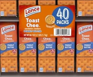 - Lance ToastChee Peanut Butter Crackers are a crunchy, bright orange snack that provides a blast of flavor with each and every bite. Each pack comes with six delicious baked cheese crackers that are held together with real peanut butter. This protein-rich snack is easy to fit into your day and makes it easier to stay full between meals.