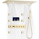 AYIVG Brushed Gold Digital Display Shower System Multi Functions Full Body Shower System 16 * 24 Inches Shower Fixtures Set with 5 Function LCD Display Thermostatic Shower Valve