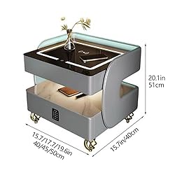 - Size: Width(Optional): 40/45/50cm (15.7/17.7/19.6in) Length: 40cm/15.7in Height: 51cm/20.1in Note: All products are measured manually, there may be 1-3cm error. Wireless charging function requires the phone to support wireless charging function. This nightstand features a dual desktop design with an upper tempered glass surface and a lower sintered stone desktop. The multi-layer stable structure ensures exceptional resistance to scratches and high temperatures, providing both durability and a modern aesthetic. The integrated wireless charging station is discreetly hidden beneath the top surface, allowing you to effortlessly charge your smartphone by simply placing it on the tabletop. Additionally, USB ports on the side provide extra convenience for charging multiple devices, eliminating the need for tangled cords and the hassle of plugging in your device. Enhance your bedroom security and convenience with the built-in password lock on the lower drawer. Safely store your valuables in the nightstand and easily access them whenever needed. The touch-control LED lighting system offers three adjustable colors, allowing you to easily switch between different lighting modes with a simple touch. Customize your bedroom ambiance by selecting the most comfortable brightness and color temperature to suit your preferences. The sintered stone shelf adds a touch of functionality, offering a sturdy and stylish surface for your bedroom essentials. The C-shaped rounded side design ensures safety by reducing the risk of accidental bumps and bruises, making it a practical choice for any bedroom. Additionally, the nightstand features high-quality metal legs with a special design that provides stability and support. The anti-slip pads on the legs protect your floors from scratches, ensuring your nightstand remains steady and secure.