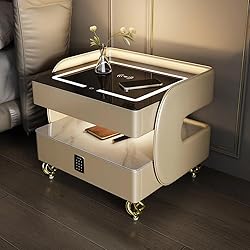 Dual Desktop Design: Featuring an upper tempered glass surface and a lower sintered stone desktop, this nightstand boasts a multi-layer stable structure that is scratch-resistant and heat-resistant, ensuring a sleek, modern look. Wireless Charging and USB Ports: The smart nightstand includes a hidden wireless charging station beneath the top surface and additional USB ports on the side. Effortlessly charge your devices by placing them on the tabletop, eliminating tangled cords and extra steps. Secure Storage with Password Lock: The lower drawer is equipped with a password lock, providing a secure space for your valuables. Keep your essentials safe and easily accessible with this smart feature. Touch-Control 3-Color Dimmable LED Light: Customize your bedroom ambiance with the touch-control LED lighting system. Switch between three adjustable colors to find the perfect brightness and color temperature for your room. Innovative and Safe Design: The nightstand features a C-shaped rounded side design, minimizing the risk of bumps and bruises for enhanced safety. The high-quality metal legs with anti-slip pads ensure stability and protect your floors from scratches.