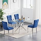 【Stylish Glass Dining Table Set】: 5-Piece kitchen dining table set include 1 glass dining table, and 4 dining chairs, which makes it perfectly sized for a dinette, kitchen, or any dining area. With a modern design and elegant shape, whether you want to enjoy dinner with your family at the dining table or gather with friends, this dining table set will be a good choice. 【51" Glass Dining Table】: This stylish Glass dining table is perfect for bringing an air of modern style to your kitchen or dining room. Dining table is made of top quality tempered safety glass and rust proof perfect combination, which is exceedingly stable, durable and beautiful, and the exquisite craftsmanship also adds to its spectacular classic retro style. 【Dining Table and Chairs Set】:This rectangular glass dining table constructed with sturdy nest X-Shaped Metal legs and tempered glass table top. The backrest and cushion of this living room chair is made of soft and springy velevt, The backrest adopts an ergonomic design, which can support your back to ensure comfort without feeling back pains when sitting for a long time. 【Package Information & Premium Customer Service】: Modern dining room table set will be send with several packages, which might not arrive at the same time, Please be patient to wait for your dining table set. If you find the product are damaged or have any problems, Feel free to contact us first by amazon message centre, we will provide free replacement. 【Quick Assembly& Easy Maintenance】: Installation of this dining table set is simple and fast by following the instructions, which can be finish in just 15-25 minutes. The smooth surface can be cleaned with a towel ot cloth, so the daily maintenance needs less time and effort.