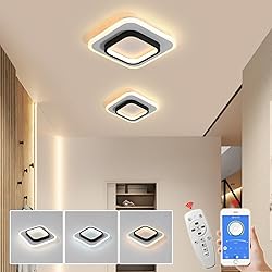 LANGLITIAODENG Square Designs Ceiling Light Fixture,3 Color Dimming Black Aisle Light,Suitable ffor Hallway Bedroom Bathroom Kitchen Balcony Stair Aisle Ceiling Lamp (Black, Dia9.4*H2 inch), BLS-101