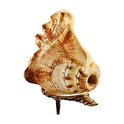 BRIJ HAAT Natural Blowing shankh conch shell with Brass Stand Golden