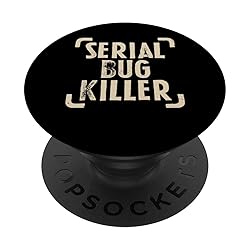 Serial Bug Killer This merchandise design with a funny pest control saying is made for exterminators and pest control technicians. Perfect present for someone who is skilled at eliminating pests. Adhesive backing attaches the PopGrip to your case or device. Will not stick to silicone, leather, waterproof, or highly textured cases. Works best with smooth, hard, plastic cases. Not compatible with wireless charging Printed top is swappable with other compatible PopGrip models. Just press flat, turn 90 degrees until you hear a click and remove to swap.