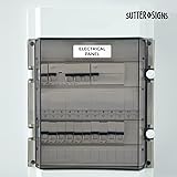 DURABLE MATERIAL | Made from high-quality ABS plastic, designed to endure industrial environments and last for years. STRONG ADHESIVE BACKING | Comes with a full adhesive backing for easy, secure attachment to any surface, eliminating the need for drilling. OPTIMAL SIZE | The 2" x 6" size is compact enough to fit near electrical panels without obstructing access, while ensuring visibility. HIGH CONTRAST DESIGN | Features black text on a white background, providing easy readability in various lighting conditions. CLEAR IDENTIFICATION | Specifically designed to mark electrical panels, aiding in compliance and enhancing safety in the workplace.