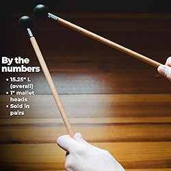 The information below is per-pack only ASSEMBLED IN USA: we're a small team working out of our independently owned and operated shop in Nashville, Tennessee; when it comes to building outstanding quality percussion instruments and mallets while supporting American jobs, we're all in WHY IT MATTERS: having control over design and production with our own hands lets us focus on first-class construction with the best materials around; our mallets and instruments are highly intentional, professional, and long-lasting ZOOM IN: the Timber Drum Co. Soft Rubber Mallets produce a full and resonant sound with some give and a gentle attack; ideal for drawing out a pleasant tone with reduced sharpness when striking your instrument WHERE TO USE: made for melodic percussion instruments like steel tongue drum, marimba, vibraphone, metallophone, wood log drum, or keyboard percussion instruments with rosewood ONE BIG THING: please check our other mallets for uses where you need a sharper attack like xylophone, glockenspiel, bells, energy chime, or wood blocks; the Timber Drum Co. T2HP Hard Poly or TB3M Brass mallets are best suited for these purposes OF NOTE: handles are made of smooth solid birch with rounded tips and are well-balanced; we stain the handles by hand in our shop to bring out the natural wood grain for a high-end look BY THE NUMBERS: 15.25" L (total), 1" mallet heads, 5/16" diameter handles; sold in pairs THE TAKEAWAY: these mallets give you a rich, soft, sweet sound on more delicate percussion instruments; great for all ages and skill levels
