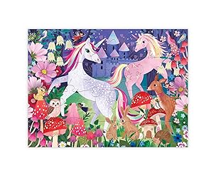 - Enter a magical kingdom! Our 50-piece Unicorn Castle puzzle in a house-shaped box will delight any little dreamer enchanted by unicorns and fairy tales. Featuring bold colors and whimsically illustrated unicorns in their magical castle, this puzzle encourages hand-eye coordination and problem-solving. Great for interaction between a parent and child that can be used over and over. A sturdy house-shaped box makes for easy storage and its small size is perfect for travel.