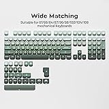 【Gradient Green Keyboard Keycaps】Step up your keyboard's aesthetic with the XVX Matcha Wagashi keycap set. These custom keycaps are inspired by the dainty japanese matcha wagashi to add a refreshing element to your keyboard, perfect for users who crave uniqueness and style. 【MOA Keycaps】The new MOA profile keycap is prettier and cuter than the XDA keycap. It also ensures that the typing sound is more even, and makes the accent key simple but enjoyable. Rounded corners give a simple, sophisticated feel that makes you feel like you're typing in the clouds. 【Durable PBT Keycaps】These PBT keycaps are made of textured, high-grade PBT and are resistant to wear, friction, and solvents. Ensure a better user experience. 【5 Side Dye Sublimation Keycap Set】The japanese key caps adopts advanced five-sided dye-sub process, the color pattern is more vivid, not afraid of oil stains, and has a long service life. 【Widely Compatibility】This keyboard key caps consists of 132 keycaps, including 104 standard keys and 28 modifiers keys, compatible with most ASIN US and UK layout 61/64/68/84/87/96/98/100/104/108 mechanical keyboards. 【What You Get】1x132 keycap set and 1 keycap puller, our worry-free 18-month warranty, and friendly customer service. It’s only keycaps, no keyboard included.
