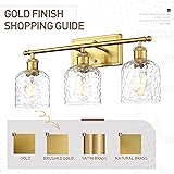 VINTAGE & INDUSTRIAL DESIGN: The 4 light bathroom vanity lamp features a clear hammered glass shade and brushed gold finish, reflecting the retro minimalist design suitable for most homes and providing perfect lighting for any space. UP/DOWN EASY INSTALLATION: Hard wired. The 4-light wall mirror light can be mounted facing upward or downward to suit your needs. Includes all mounting hardware for quick and easy installation. ETL LISTED & WARRANTY: ETL listed for your safety. It is backed by a 1-year manufacturer's warranty. This gold bathroom vanity light is ideal for the bathroom, bedroom, dressing room, powder room, headboard, vanity table, makeup dressing table, mirror cabinets, hallway, etc. BULB REQUIREMENTS: Requires 4 x E26 base 60W bulb (Halogen, LED, or CFL). Bulb sold separately. 7/24 QUALITY SERVICE: We provide a 30-day money-back guarantee for any reason. If you have any quality or skill problems like broken glass shade, replacement parts, or installation problems, just feel free to contact us for easy and fast customer service.