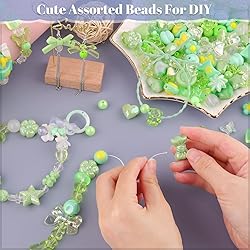 PACKAGE CONTENT - Includes 150g of green assorted beads (200-260 pcs)packed by weight,enough to fulfill your DIY ideas.This set features transparent, jelly, iridescent, glitter and solid color effects. Along with shapes like hearts, bows,bears and more MIXED SIZE - Our beads range in size from 1 to 1.5 inches, offering both chunky and delicate options. The bead holes range from 1 mm to 3.5 mm, with most being around 2 mm,suitable for both crystal strings and elastic cords PREMIUM QUALITY - Made from durable and lightweight acrylic,perfect for crafting and jewelry projects.These beads boast a smooth surface, uniform color, and clear details. Additionally, they are washable and drop-resistant WIDE USAGE - Ideal for creating cute necklaces, bracelets, earrings, sun catchers, keychains, anklets, and accessories for phones and bags. They also pair well with other types of beads like glass, silicone, crystal, pony, metal or clay beads GREAT TIME - Working on DIY projects together can help develop creativity and imagination while providing quality bonding time.Please note that the charms are randomly mixed, so some specific designs may not be included in the package