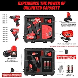 𝐏𝐋𝐄𝐀𝐒𝐄 𝐍𝐎𝐓𝐄: 𝐂𝐀𝐒𝐄 𝐎𝐍𝐋𝐘. 𝐌𝟏𝟐 𝐈𝐌𝐏𝐀𝐂𝐓 𝐃𝐑𝐈𝐕𝐄𝐑 & 𝐃𝐑𝐈𝐋𝐋 𝐒𝐄𝐓 & 𝐀𝐂𝐂𝐄𝐒𝐒𝐎𝐑𝐈𝐄𝐒 𝐍𝐎𝐓 𝐈𝐍𝐂𝐋𝐔𝐃𝐄𝐃, 𝐈𝐌𝐀𝐆𝐄𝐒 𝐀𝐑𝐄 𝐅𝐎𝐑 𝐃𝐄𝐌𝐎𝐍𝐒𝐓𝐑𝐀𝐓𝐈𝐎𝐍 𝐏𝐔𝐑𝐏𝐎𝐒𝐄𝐒 𝐎𝐍𝐋𝐘. [Hard Case for Milwaukee Power Tools & Battery & Charger] : For Milwaukee tools case is designed for Milwaukee M12 Impact Drill: 2401-20, 2407-20, 2503-20, 2504-20, 2504-21, 2505-20, 2515-20, 3404-20, 3403-20, 3497-22; Impact Driver: 2401-20, 2402-20, 2406-20, 2455-20, 2462-20, 2467-20, 2505-20, 2551-20, 2553-20, 3453-20; XC5.0/4.0/3.0/2.0/1.5 Battery Pack: 48-11-2401, 48-11-2402, 48-11-2420, 48-11-2425, 48-11-2430, 48-11-2440, 48-11-2450, 48-11-2460; Chager: 48-59-2401, 48-59-1808 and etc [Precision Custom Interior Design for Milwaukee Tools]: The case features a custom interior tailored specifically for Milwaukee drills, impact drivers, batteries, and chargers. The removable foam inserts can be adjusted to fit different models snugly, ensuring your tools remain securely in place during transport, protecting them from scratches and wear [Sturdy Carrying Design for Milwaukee]: This hard case is designed with a durable and secure lock latch system, ensuring safely for Milwaukee tools. The comfortable and stable handle makes it convenient to carry your tools to job sites [Versatile Application Case]: Whether you're a professional contractor, electrician, or a DIY enthusiast, this hard case is designed to meet your needs. It's ideal for transporting and storing for Milwaukee drills, impact drivers, batteries, and chargers on busy job sites, in workshops, or during home renovation projects. The case's durable construction and secure lock latch make it perfect for protecting your tools during travel, ensuring they are ready for use in any setting [High-Quality Material Case for Milwaukee]: Constructed from durable polypropylene, this hard case offers excellent protection against impacts, dust, and moisture. The rugged PP material ensures for Milwaukee tools remain safe and secure, providing long-lasting performance in any environment