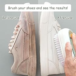 Multifunctional Cleaning Tool: Our upgraded multifunctional liquid shoe Brush is a 2-in-1 cleaning brush for various cleaning needs. This set contains one shoe brush and one laundry brush Convenient Liquid Dispenser: Featuring a unique liquid box design, this shoe brush allows you to store a certain amount of laundry detergent or cleaning solution inside. With just a press of a button, you can easily dispense the liquid onto the brush, making it convenient for cleaning clothes, carpets, furniture, and even vegetables Gentle and Effective Cleaning: With quality soft fur bristles, this brush provides gentle yet effective cleaning. The bristles are designed to be smooth enough to avoid damaging the surface of your clothes or shoes, while still effectively removing dirt and stains Comfortable Grip: The brush handle has been textured to increase friction and provide a comfortable grip, making cleaning work more effortless. It also has a hanging loop that can be easily hung in the kitchen or bathroom, saving space and keeping it clean and tidy Widely Used: This versatile brush is not limited to just shoes and clothes. It can also be used for cleaning other items such as bathtubs, tiles, countertops, and more. It is a must-have cleaning tool in every household
