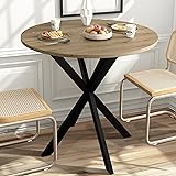 【Contemporary Simple Design】With circular forms, our small round dining table tends to break through straight lines, is composed of a brown wood grain tabletop and an X-shaped frame, easily complements different room styles 【Space Optimization】The circle round table is a smart space-saving option; its cornerless design allows for easy addition of extra chairs, maximizing seating capacity for up to 4 people. It enhances movement and flow, making it ideal for small dining areas 【Safety Protection】Our farmhouse round tables lack sharp corners, making them a safer choice, especially for households with children or elderly members. With round tables, there's no worry about accidentally bumping into sharp edges 【Compact & Functional】This 31.5" round dining table comfortably has 2-4 seats, making it an ideal choice for smaller spaces. Its compact design maximizes seating while maintaining a stylish aesthetic, perfect for intimate gatherings 【Sturdy & Intimate Design】The round tabletop design utilizes high-grade high-quality MDF, complemented by a metal frame to ensure the table is robust and built for long-term use. Max Load: 200 lbs