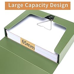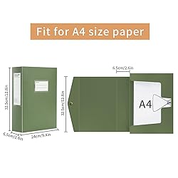 Product Size: Measures 32.5cm x 24 x 6.5 cm, fit for standard A4 Paper. With a 65mm large capacity for the storage of up to 500 sheets.Package includes 2 Pack *Green A4 box files. Material: This document box file is made of sturdy PP material, they are lightweight and durable, not easy to deformation. Design: With metal buttons effectively protect files. The built-in spring clip can fix the documents well, and put the documents in the file box in order. Classification Lable & Spine Label:The front label and spine label design for easy identification of contents. Application: Use at home, office, school, museums, archives, libraries; Perfect for storing A4 size file, publication, catalogs and and any other paperwork.