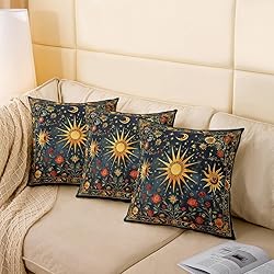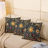 Castle Fairy Sun Moon Throw Pillow Covers Set of 2 Boho Exotic Style Cushion Covers for Couch Sofa Rustic Style Flowers Decorative Pillowcases Navy Gold Outdoor Pillows Covers,18"x18"